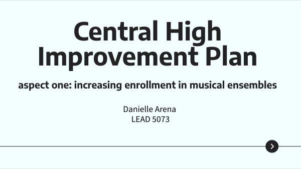 The first aspect of the Central High Imrprovement plan is to increase the number of students enrolled in musical ensembles.