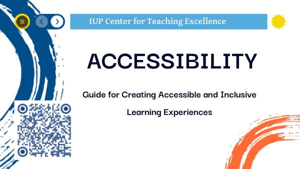 Ensure all documents (PDFs, text, presentations) are accessible. IUP offers excellent resources for creating accessible materials!