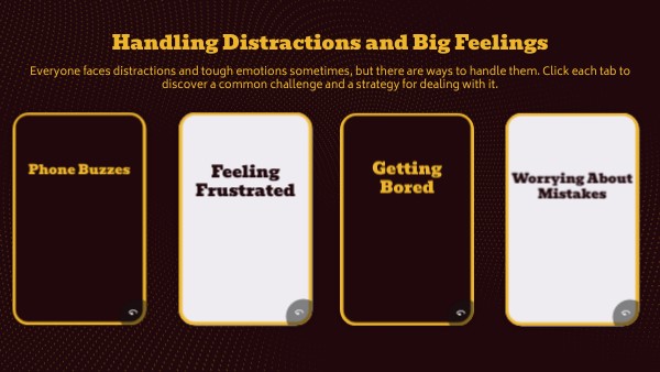 Everyone makes mistakes, and worrying about them can make it hard to focus. When you notice these thoughts, remind yourself that mistakes are part of learning and give yourself permission to try again. Being kind to yourself helps you bounce back and keep going.