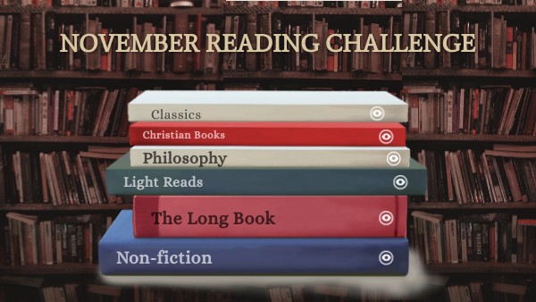 I have already chosen my main Christian book for the month, but Now I have to decide on a Bible reading plan for November. I want at least 100 pages of my reading for the month to come from Scripture.