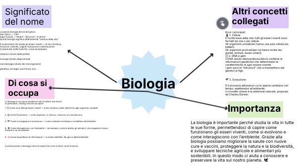 La biologia si occupa di studiare la vita in tutte le sue forme.In particolare, i biologi cercano di capire: 1. 🧬 Come sono fatti gli esseri viventi — la loro struttura, dalle cellule fino agli organismi completi. 2. ⚙️ Come funzionano — come respirano, si nutrono, crescono e si riproducono. 3. 🌱 Come si sviluppano e si evolvono — come cambiano nel tempo e si adattano all’ambiente. 4. 🌍 Come interagiscono con l’ambiente — ad esempio, come le piante, gli animali e i microrganismi vivono insieme in un ecosistema. 5. 🧠 Come trasmettono le informazioni — lo studio del DNA, dei geni e dell’ereditarietà. In poche parole: la biologia cerca di capire che cos’è la vita e come funziona.