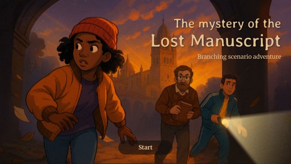 Immerse yourself in a university adventure full of mystery and decisions. Explore different paths to solve the riddle of the lost manuscript. Ideal for immersive learning and enhancing critical thinking.