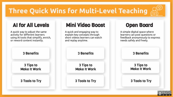 Three Quick Wins for Multi-Level Teaching