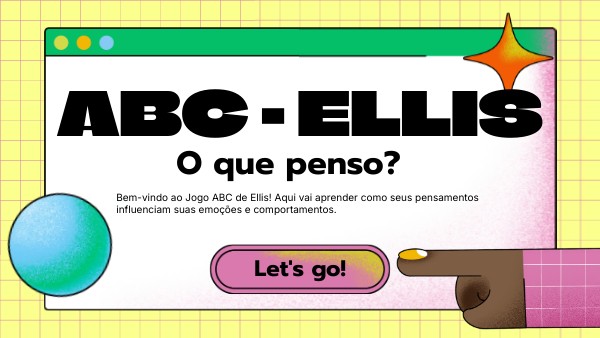 Bem-vindo ao Jogo ABC de Ellis! Aqui vai aprender como seus pensamentos influenciam suas emoções e comportamentos.