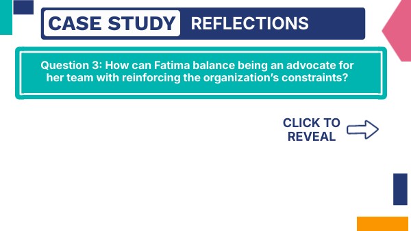 Question 3: How can Fatima balance being an advocate for her team with reinforcing the organization’s constraints?