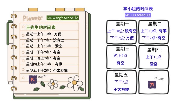 上午10點: 有事下午2點: 有空