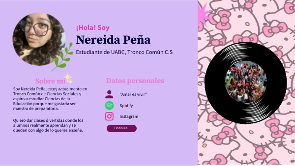 Soy Nereida Peña, estoy actualmente en Tronco Común de Ciencias Sociales y aspiro a estudiar Ciencias de la Educación porque me gustaría ser maestra de preparatoria. Quiero dar clases divertidas donde los alumnos realmente aprendan y se queden con algo de lo que les enseñe.