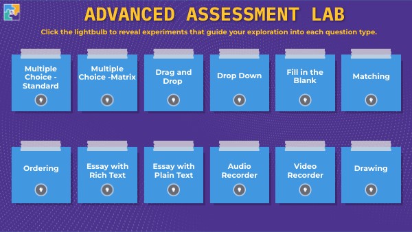 Click the lightbulb to reveal experiments that guide your exploration into each question type.
