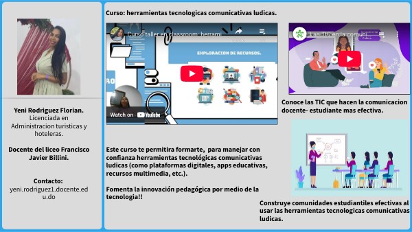Este curso te permitira formarte, para manejar con confianza herramientas tecnológicas comunicativas ludicas (como plataformas digitales, apps educativas, recursos multimedia, etc.). Fomenta la innovación pedagógica por medio de la tecnologia!!