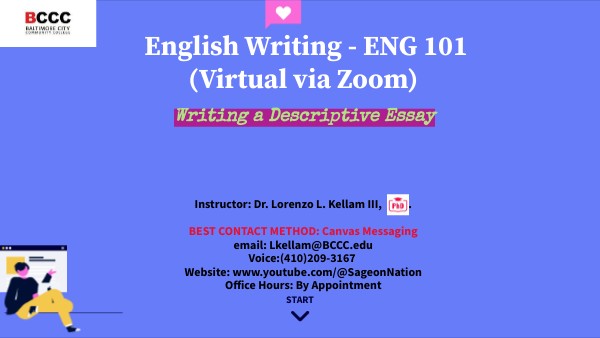 Instructor: Dr. Lorenzo L. Kellam III, . BEST CONTACT METHOD: Canvas Messaging email: Lkellam@BCCC.edu Voice:(410)209-3167 Website: www.youtube.com/@SageonNation Office Hours: By Appointment