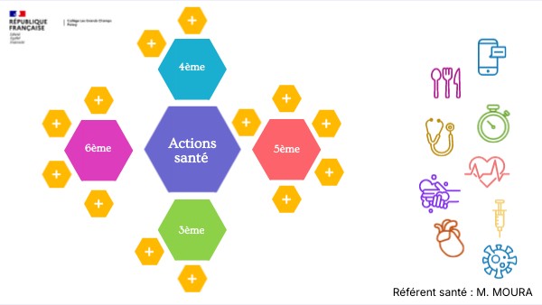 Le parcours éducatif de santé est structuré autour de trois grands axes non dissociés, l’éducation à la santé, la prévention et la protection de la santé. Il se décline, sur un plan individuel, notamment par l’intervention des professionnels de santé, de service social et des psy-EN, et sur un plan collectif, par des actions portées par les CESC qui mobilisent l’ensemble de la communauté éducative, dont les familles et les partenaires locaux (par exemple les agences régionales de santé, les collectivités territoriales, les associations, etc.).