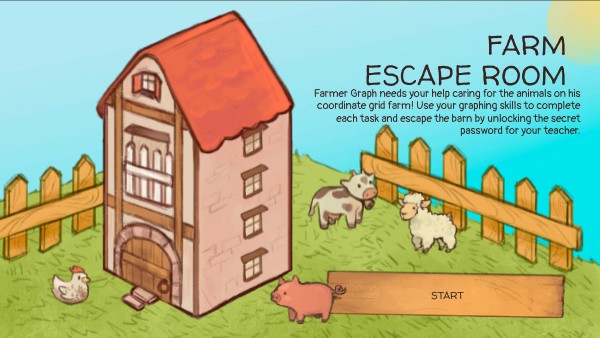 Farmer Graph needs your help caring for the animals on his coordinate grid farm! Use your graphing skills to complete each task and escape the barn by unlocking the secret password for your teacher.