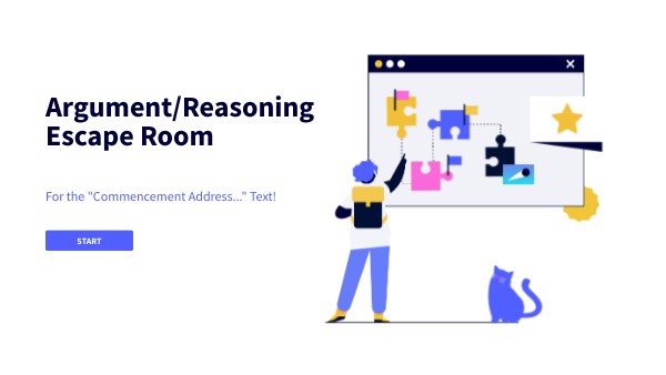 So we read this loooooong speech given by Michelle Obama to a group of graduating high schoolers. We looked for and talked about all of the terms related to argumentation: ethos, logos, pathos, logical fallacies, inductive reasoning, abductive reasoning, and deductive reasoning! Now it's up to you all to use that knowledge to escape!!! Get through all of the tasks at hand to escape the room.