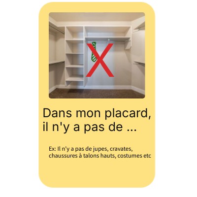 Ex: en hiver, je ne porte jamais de manteau, gants, foulard, bonnet etc