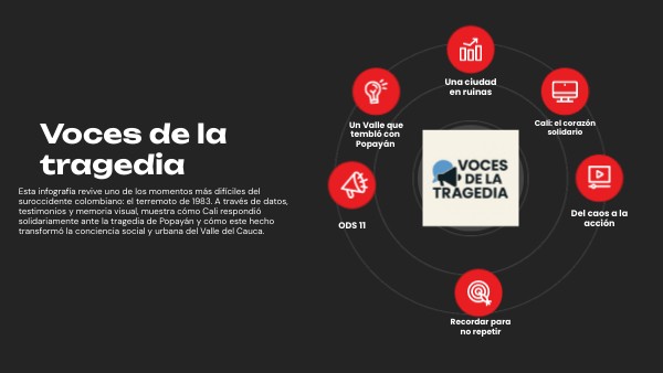 Esta infografía revive uno de los momentos más difíciles del suroccidente colombiano: el terremoto de 1983. A través de datos, testimonios y memoria visual, muestra cómo Cali respondió solidariamente ante la tragedia de Popayán y cómo este hecho transformó la conciencia social y urbana del Valle del Cauca.