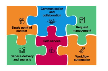 Employees, customers, or end users have one place to request assistance, report a problem, or find information about any business service, such as IT, HR, or Finance. This may be through dedicated portals for different groups of users, such as an employee or customer portal.