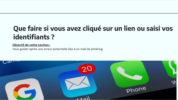 Objectif de cette section : Vous guider après une erreur potentielle liée à un mail de phishing.