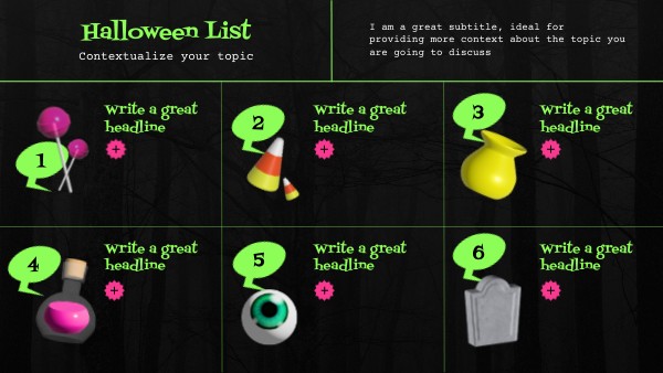 Get ready for a dose of mystery and fun. In this list, you will find the essential Halloween classics: glowing pumpkins, bubbling potions, witch hatsand other secrets that are only revealed if you dare to turneach card. Explore, discoverand let the magic work its trick!