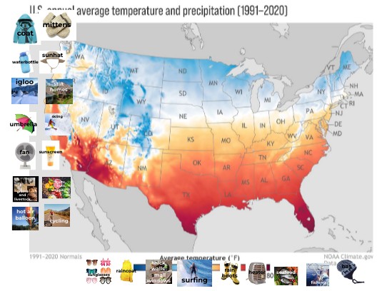 Identify how geographic location influences human characteristics of place such as shelter, clothing, food, and activities
