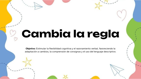 Objetivo: Estimular la flexibilidad cognitiva y el razonamiento verbal, favoreciendo la adaptación a cambios, la comprensión de consignas y el uso del lenguaje descriptivo.