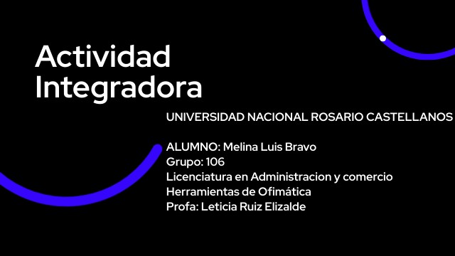 UNIVERSIDAD NACIONAL ROSARIO CASTELLANOS ALUMNO: Melina Luis Bravo Grupo: 106 Licenciatura en Administracion y comercio Herramientas de Ofimática Profa: Leticia Ruiz Elizalde