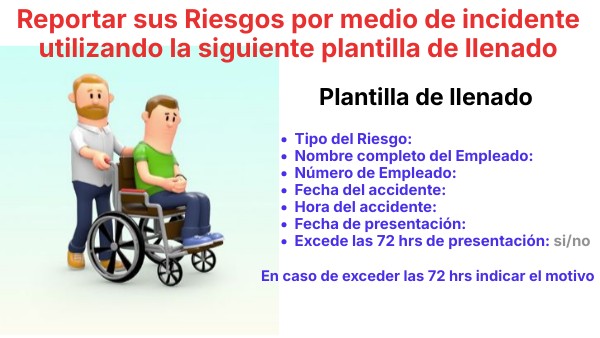 Reportar sus Riesgos por medio de incidente utilizando la siguiente plantilla de llenado