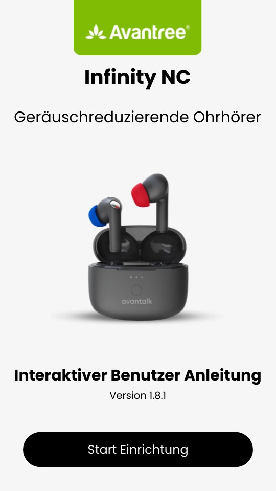Schalten Sie auf Ihrem Bluetooth-Gerät (wie Telefon) Bluetooth ein und wählen Sie "Avantalk Infinity NC". Verbunden: LED leuchtet fest blau für 1s, dann aus.