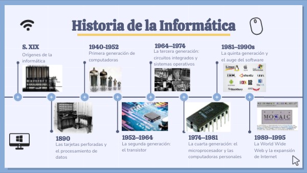 Durante esta etapa surgieron los sistemas operativos más influyentes, como MS-DOS, Windows, Mac OS y Unix. Las computadoras se hicieron más accesibles y potentes, y comenzaron a conectarse entre sí a través de redes, sentando las bases del Internet moderno. Esta generación marcó la transición hacia una sociedad cada vez más digital.