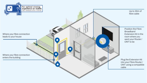 Position the Fibre Broadband Extension Kit in the room where you want your Router / ONT to be
