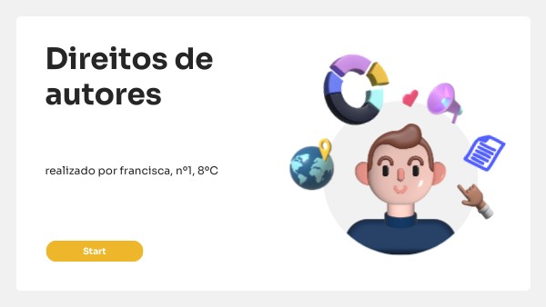 Direitos de autor são um conjunto de direitos que protegem as criações intelectuais originais, como obras literárias, artísticas e científicas. Eles concedem ao autor (ou detentor dos direitos) o direito exclusivo de utilizar e autorizar a utilização da sua obra, dividindo-se em direitos morais (inalienáveis e inesgotáveis, como a reivindicação da autoria) e direitos patrimoniais (alienáveis e que prescrevem, como o direito de explorar economicamente a obra). Há dois tipos: