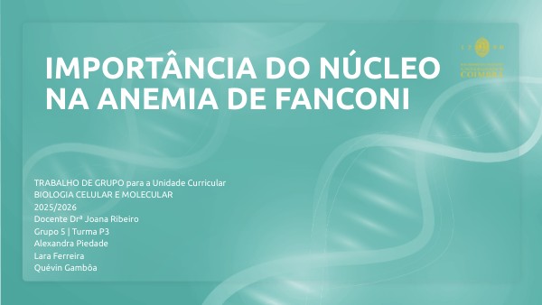 TRABALHO DE GRUPO para a Unidade Curricular BIOLOGIA CELULAR E MOLECULAR2025/2026 Docente Drª Joana Ribeiro Grupo 5 | Turma P3 Alexandra Piedade Lara Ferreira Quévin Gambôa