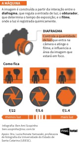 Controla a quantidade de luz que entra na câmera e atinge o filme, e influencia a área da imagem que estará em foco.