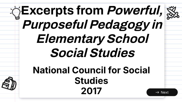 Excerpts from Powerful, Purposeful Pedagogy in Elementary School Social Studies