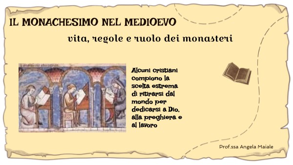 Sintesi dell'insegnante: • Il monachesimo come rifugio spirituale e centro culturale nel Medioevo. Compito a casa: Crea un piccolo diario immaginario: "Un giorno nel monastero". Materiale fornito agli studenti • Mappa semplificata del monastero. • Scheda didattica con parole chiave: monaco, Regola, preghiera, lavoro, scriptorium, San Benedetto.
