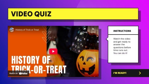 Watch the video and get ready to answer the questions before time runs out.You can do it!