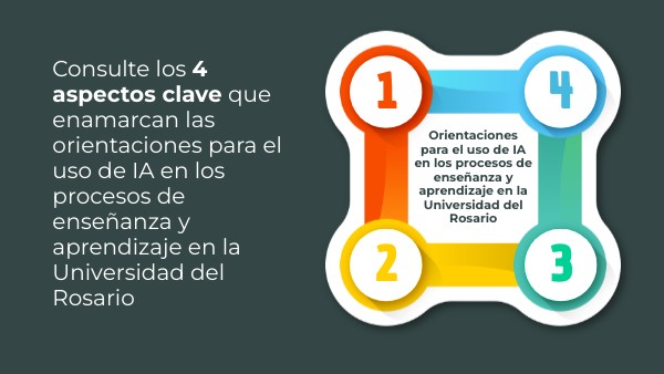 Consulte los 4 aspectos clave que enamarcan las orientaciones para el uso de IA en los procesos de enseñanza y aprendizaje en la Universidad del Rosario