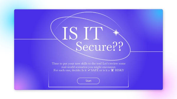 Time to put your new skills to the test! Let's review some real-world scenarios you might encounter. For each one, decide: Is it ✅SAFE or is it a 🚨 RISKY