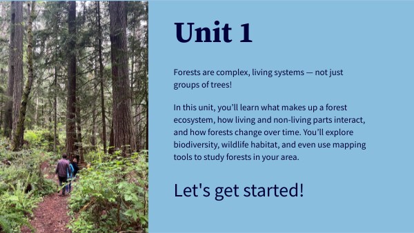 Congradulation! You’ve learned how foresters collect data that guides real-world decisions about forest management. By measuring trees and calculating things like biomass and carbon storage, you’ve seen how science connects to sustainability — helping balance forest health, wildlife habitat, and resource use.