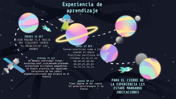 jueves 23 octleer pagina 11,e inicio del siguiente cuento "el principito" los baobas