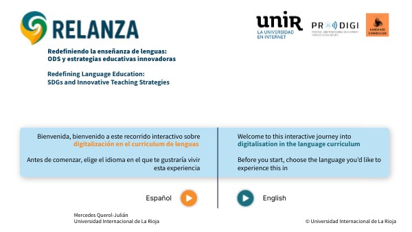 Este Genially forma parte del proyecto “Redefiniendo la enseñanza de lenguas: ODS y estrategias educativas innovadoras”, financiado por la Universidad Internacional de La Rioja (UNIR), España. Dirigido por la Profesora Mercedes Querol-Julián, cuenta con la aprobación del Comité de Ética de la Investigación de la UNIR (referencia: PI 140/2024)