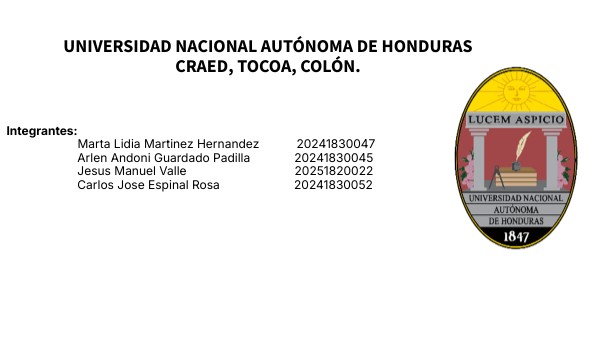 Integrantes: Marta Lidia Martinez Hernandez 20241830047 Arlen Andoni Guardado Padilla 20241830045 Jesus Manuel Valle 20251820022 Carlos Jose Espinal Rosa 20241830052