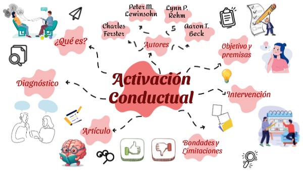 1. Terapia breve, estructurada y práctica que se enfoca en la acción y resolución de problemas. 2. Cambiar lo que se hace para cambiar lo que se siente/ Cambiar la conducta para transformar pensamientos y emociones. 3. El bienestar surge al recuperar actividades significativas. .4. El terapeuta orienta y ayuda a planificar metas realistas y a corto plazo, en conjunto con el consultante. 5. Se actúa con propósito según la planificación, no por impulso emocional ni dependiendo del estado de ánimo