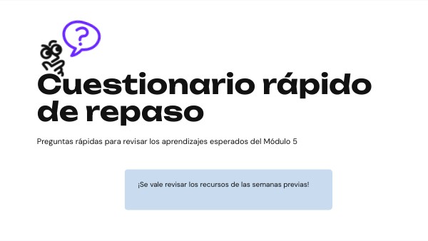 Preguntas rápidas para revisar los aprendizajes esperados del Módulo 5