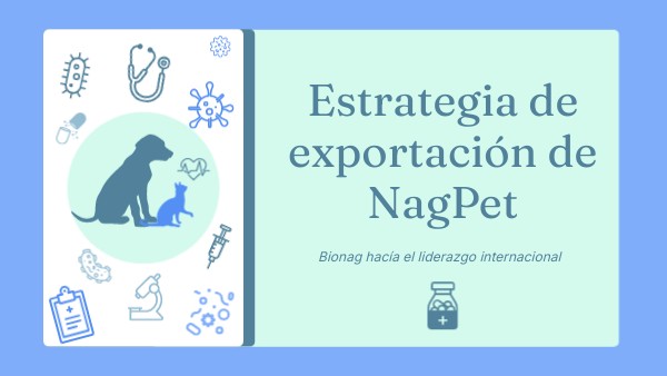 Estrategia para exportar el producto veterinario NagPet de BIONAG a Estados Unidos, un tratamiento antiviral y microbicida a base de nanotecnología para caninos y felinos (parvovirus, moquillo, rinotraqueítis, etc.). Esta estrategia busca capitalizar la alta demanda en el mercado de salud animal de EE. UU. y la innovación tecnológica del producto mexicano.