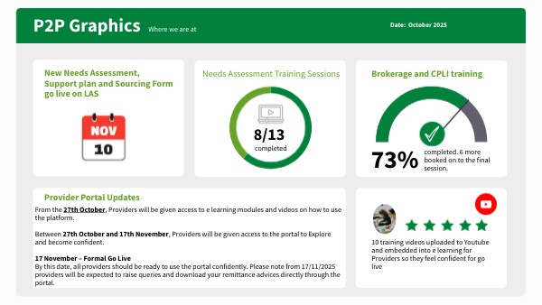 From the 27th October, Providers will be given access to e learning modules and videos on how to use the platform. Between 27th October and 17th November, Providers will be given access to the portal to Explore and become confident. 17 November – Formal Go Live By this date, all providers should be ready to use the portal confidently. Please note from 17/11/2025 providers will be expected to raise queries and download your remittance advices directly through the portal.