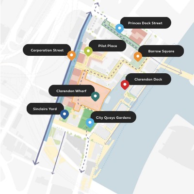 An enhanced pedestrian and cycle route providing a key link between Clarendon Wharf, St Joseph’s Church and the Titanic Quarter.