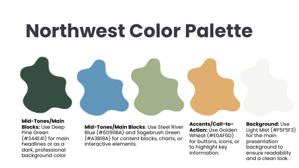 Background: Use Light Mist (#F5F5F3) for the main presentation background to ensure readability and a clean look.