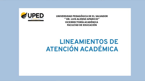 UNIVERSIDAD PEDAGÓGICA DE EL SALVADOR ” DR. LUIS ALONSO APARICIO” VICERRECTORÍA ACADÉMICA FACULTAD DE EDUCACIÓN