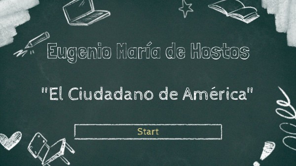Narración cronológica de la vida de Eugenio María de Hostos, dónde se relatan algunos de sus logros más notables a lo largo de todo el continente Americano.