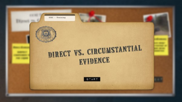 Look closely at each photo of evidence and decide whether it’s direct or circumstantial. Direct Evidence proves someone committed the act. Circumstantial Evidence only connects them by association. Tip: Ask yourself — does this clue prove they did it, or just that they were there?Click on each photo to classify.